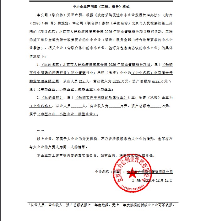 中标成交供应商名称:北京尚合佳物业管理有限公司